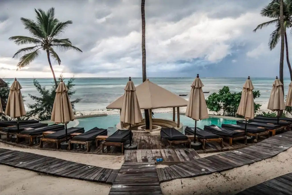 Our requirements for accommodation in Zanzibar were pretty simple: a family bungalow (as opposed to a hotel room), located as close to the beach as possible. I thought to myself that there must be loads of places that would fit the criteria. Well, yes there were, and that was part of a problem. I was simply not able to choose! In the end, we went for a place that offered draft beer (for hubby) and swing sun loungers (for me). Because that’s the kind of travelers we are. π